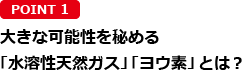 新潟県の地下に眠る水溶性天然ガスはなんと約1000億m3。これは新潟県産天然ガスの県内消費量に置きかえると、およそ77年分に相当します。この水溶性天然ガスは燃料としてだけではなくて有益な化学製品としての原料としても活用できます。